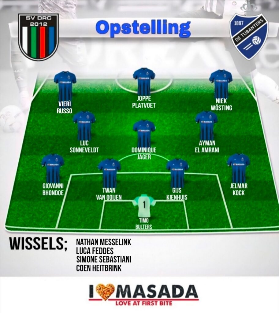 Na de toch wel teleurstellende 3-3, uit tegen Victoria ’28, is Tubanters weer afhankelijk geworden van andere ploegen in de 5e klasse. Kampioenschap niet in eigen handen. Maar het is nog wel vroeg om daarover te spreken. En de blauw/zwarten mogen er helemaal niet over praten, want het gelijke spel in Enschede was al het zoveelste puntverlies. Wel heeft de ploeg van trainer Peter Bokma meer uit- dan thuiswedstrijden gespeeld en moest het deze zaterdag wederom uit spelen. Er wordt afgereisd naar Almelo, waar laagvlieger DRC ’12 wacht. Die ploeg verliest niet meer met grote uitslagen als vorig seizoen wel het geval was. Toen wist Tubanters beide duels met 0-9 en 9-0 te winnen. Hoe ging het deze zaterdagmiddag?